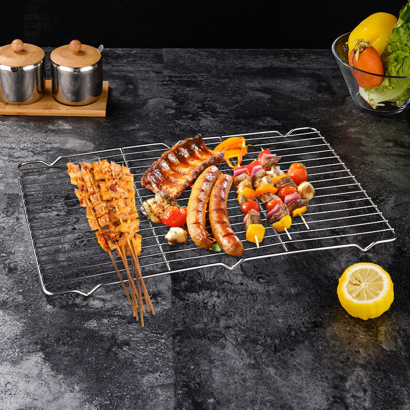 Nuestra red de apoyo está hecha de malla de acero inoxidable de alta calidad, que es resistente al calor y duradera.Haciendo la comida perfecta cada vezSu forma rectangular proporciona mucho espacio para asar todo, desde jugosos filetes hasta sabrosas verduras, mientras que el alambre de pollo evita que los alimentos caigan de la parrilla,Lo que lo hace perfecto para asar artículos más pequeños como camarones y verduras en cubos.