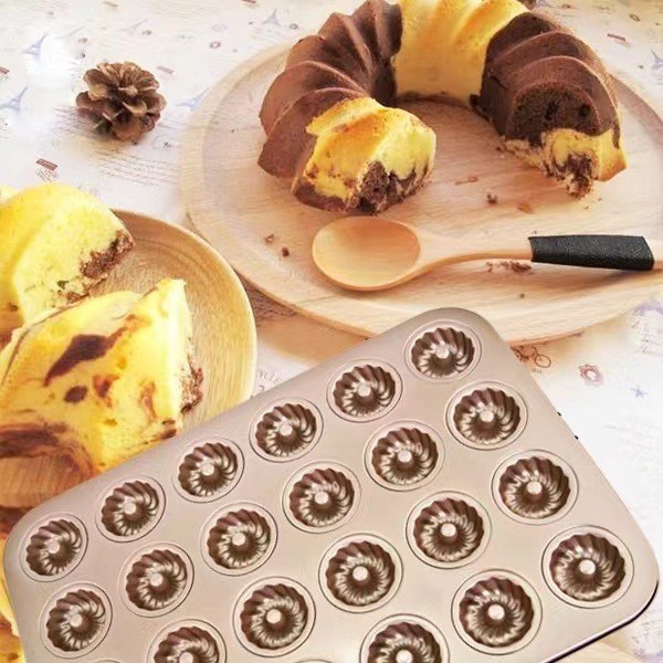 El molde tiene 24 cavidades individuales en forma de pétalo de flor, lo que le permite hornear múltiples mini pasteles o magdalenas a la vez.