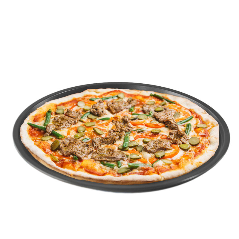 13.7 pulgadas No adhesivo engrosado redondo de fondo delgado sartén de pizza